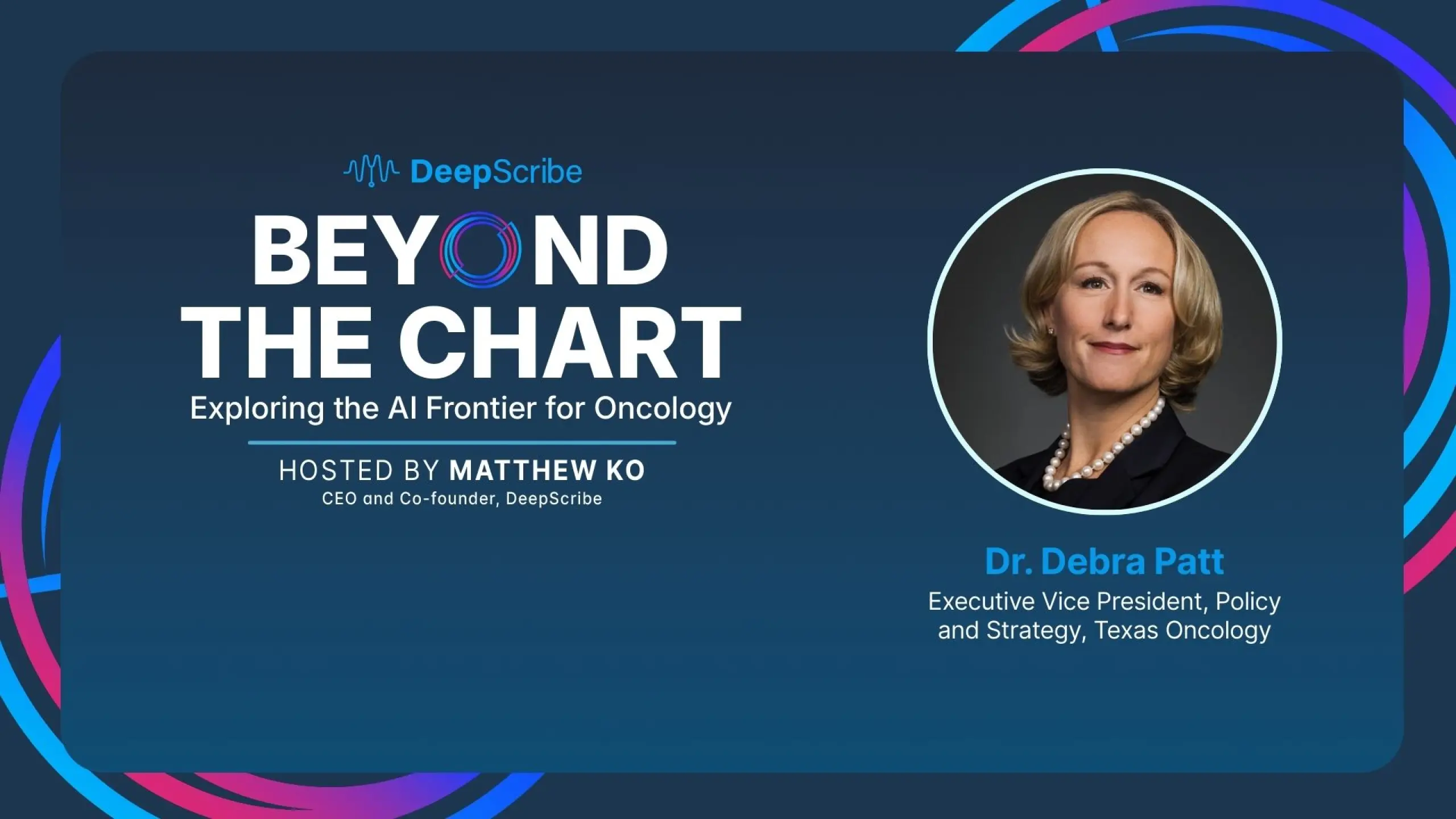 In an episode of Beyond the Chart: Exploring the AI Frontier in Oncology, Dr. Patt talks with show host Matthew Ko, DeepScribe founder and CEO, about her framework for reaching “nirvana” in oncology, the role of ambient AI in oncology, and the work required to achieve an ideal state of cancer care delivery.